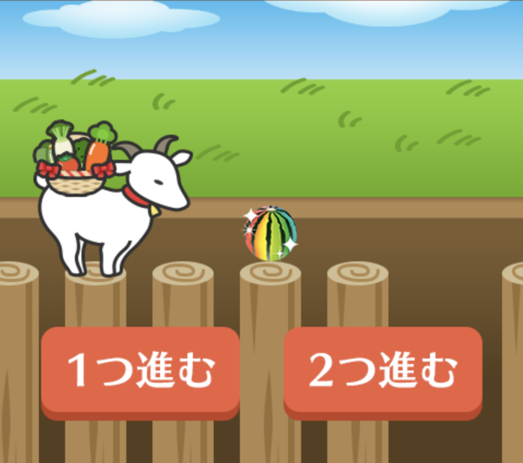 野菜をお届け!ヤギジャンプは、これらのゲームを極限まで幼児向けにした、シンプルなゲームです。